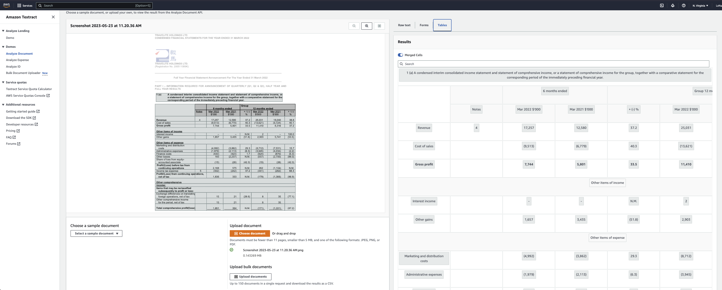 Image below is the screenshot of AWS textract UI.