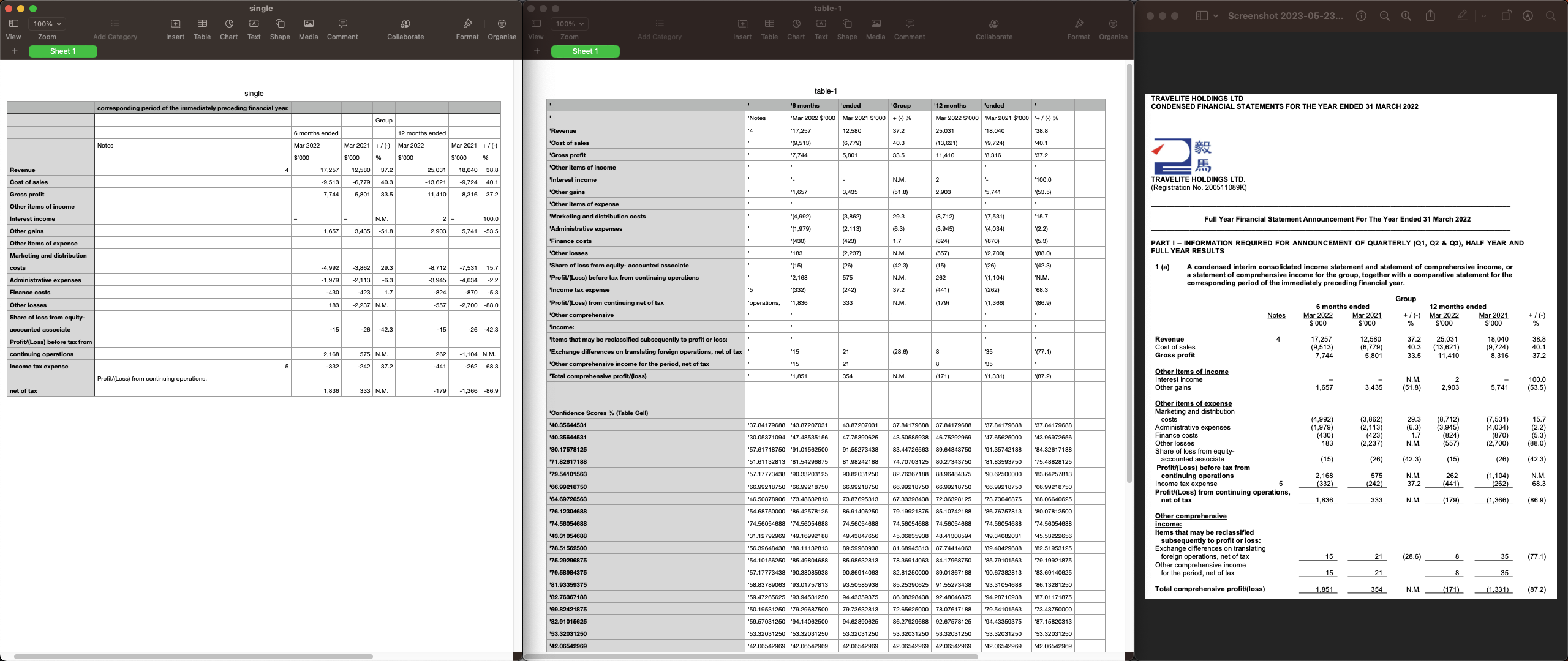 - (4) Column header texts are grouped together (i.e., Mar 2022 $’000’).