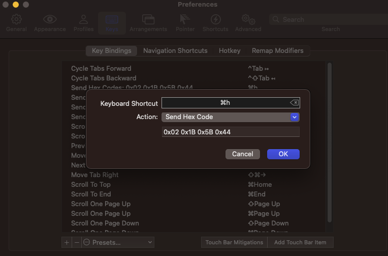 #Cmd-h 0x02 0x1B 0x5B 0x44 Move to pane at left